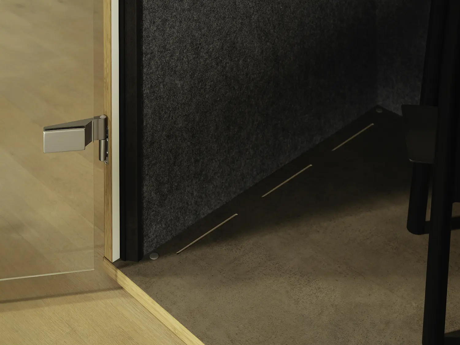 Die Telefonbox soll als Rückzugsort für Mitarbeiter*innen dienen und daher über eine ausreichende Schallisolierung verfügen, sowohl von außen nach innen als auch umgekehrt. Verschiedene Anbieter beziehen sich bei der Schallisolierung gern auf Dezibelwerte, um den schallhemmenden Effekt ihrer Produkte zu verdeutlichen. Allerdings sind Papierwerte meist nicht aussagekräftig und sollten durch Praxistests unter realen Bedingungen überprüft werden, da sie oft schwer vergleichbar sind.