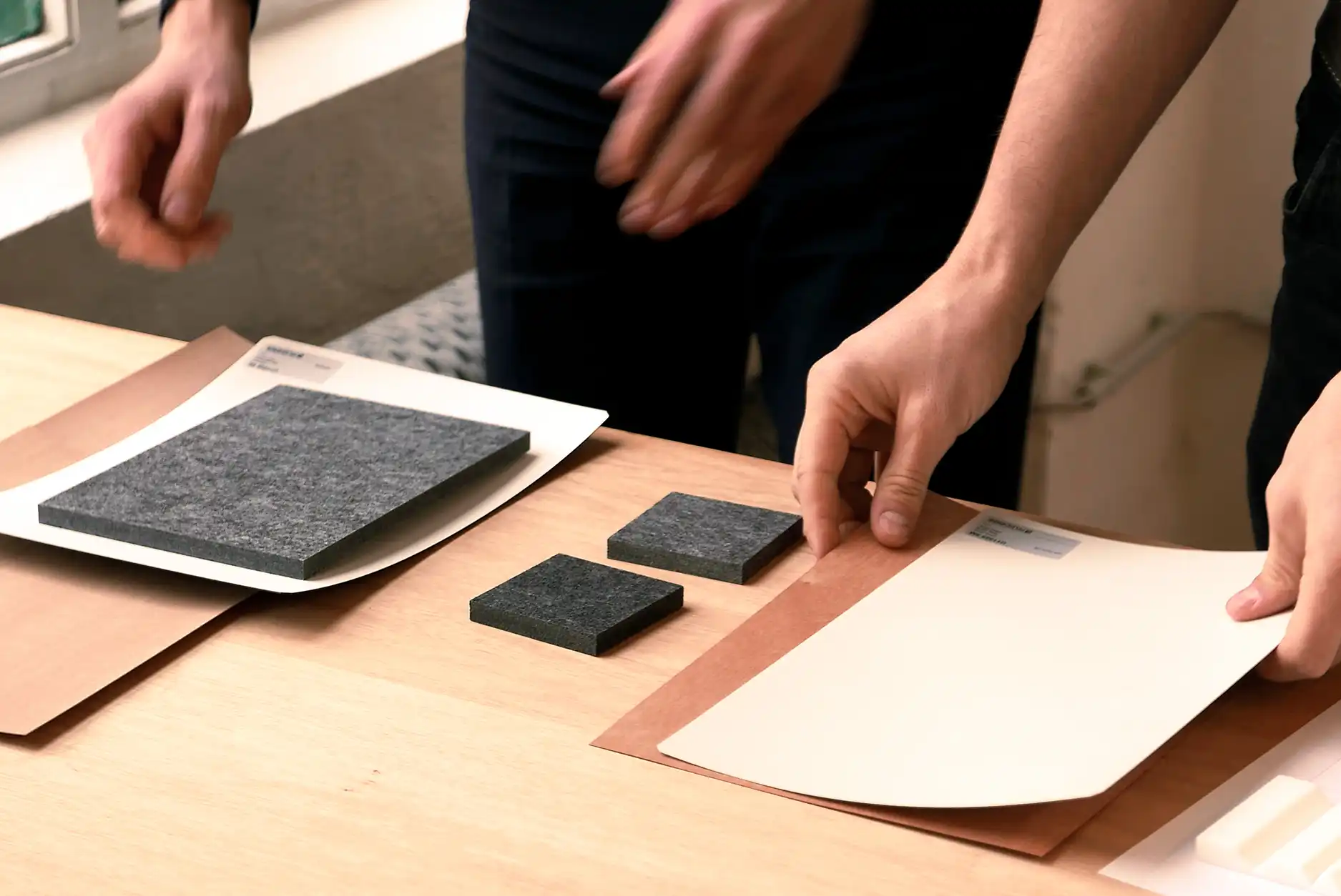 Die Materialien für Telefonboxen variieren je nach Anbieter. Rahmen werden oft aus Holz, Aluminium oder Stahl gefertigt, wobei beide Materialgruppen einen guten Schallschutz bieten. Entscheidend für die Akustik ist jedoch die Innenverkleidung. Unverkleidete Glas- und Holzflächen können störenden Widerhall verursachen, während Akustikvlies oder -schaum in Kombination mit Stoffen ideal sind.
