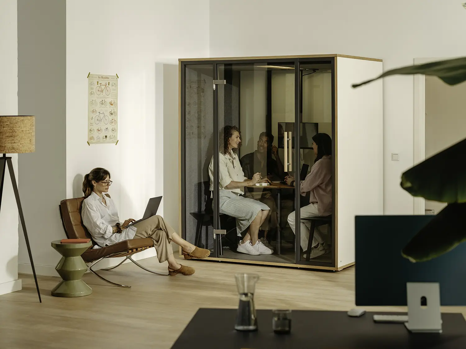 Eine Telefonbox muss eine echte Alternative zum eigenen Arbeitsplatz sein. Mitarbeiter*innen sollen sich in ihr wohlfühlen und so produktiv wie möglich arbeiten können. Dafür sind drei Dinge entscheidend: Komfort, Strom und smarte Features.
